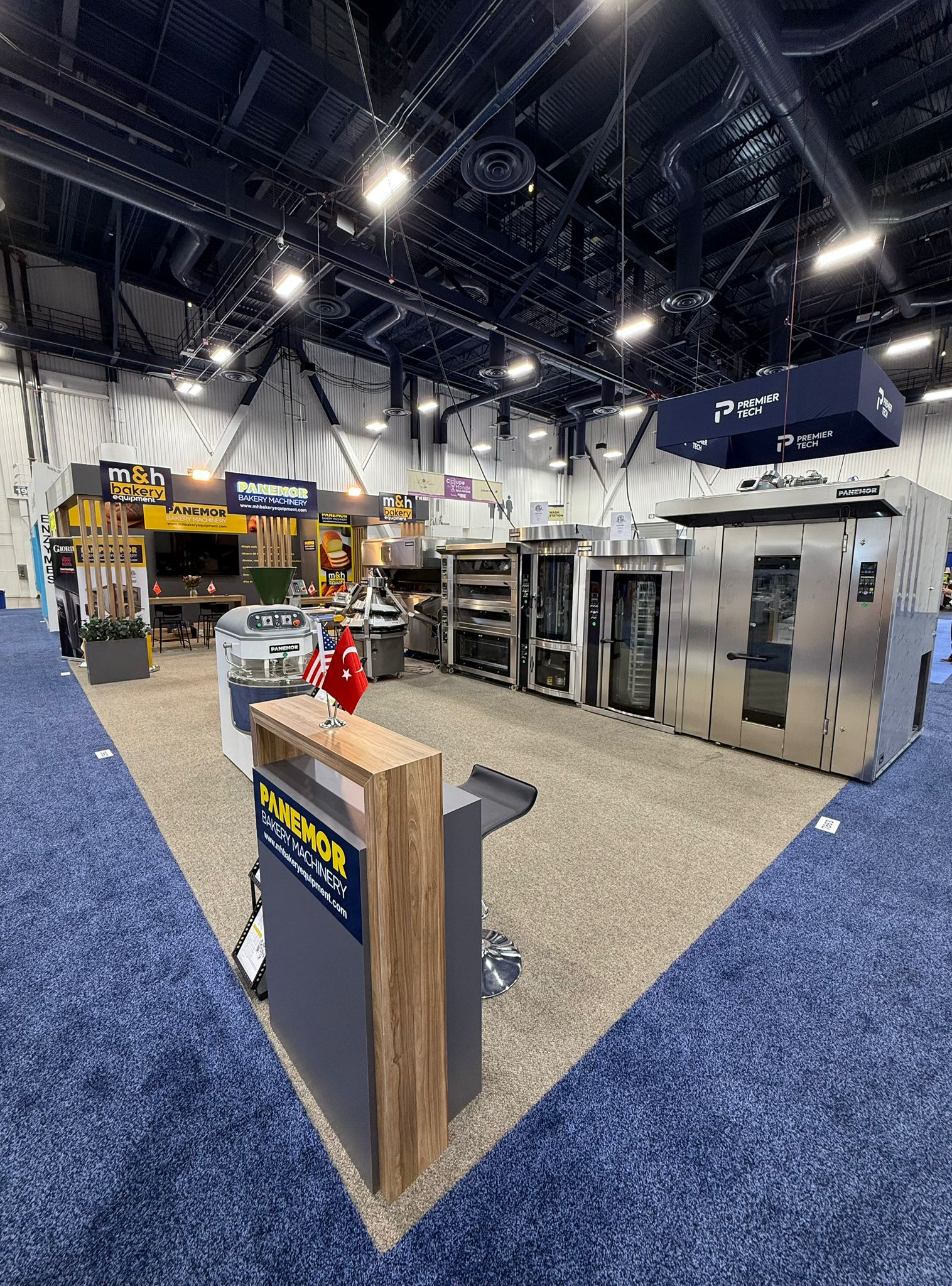 Panemor designed a special exhibition stand for the IBIE (International Baking Industry Exposition) held in Las Vegas in 2025. With its modern and eye-catching design, the stand reflected the brand’s innovative and professional identity. Featuring LED lighting, large visuals, and an open layout, the stand offered visitors a spacious and impressive experience.